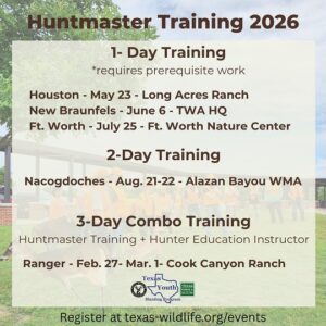 **TPWD Employees are exempt from Huntmaster Training Fees.